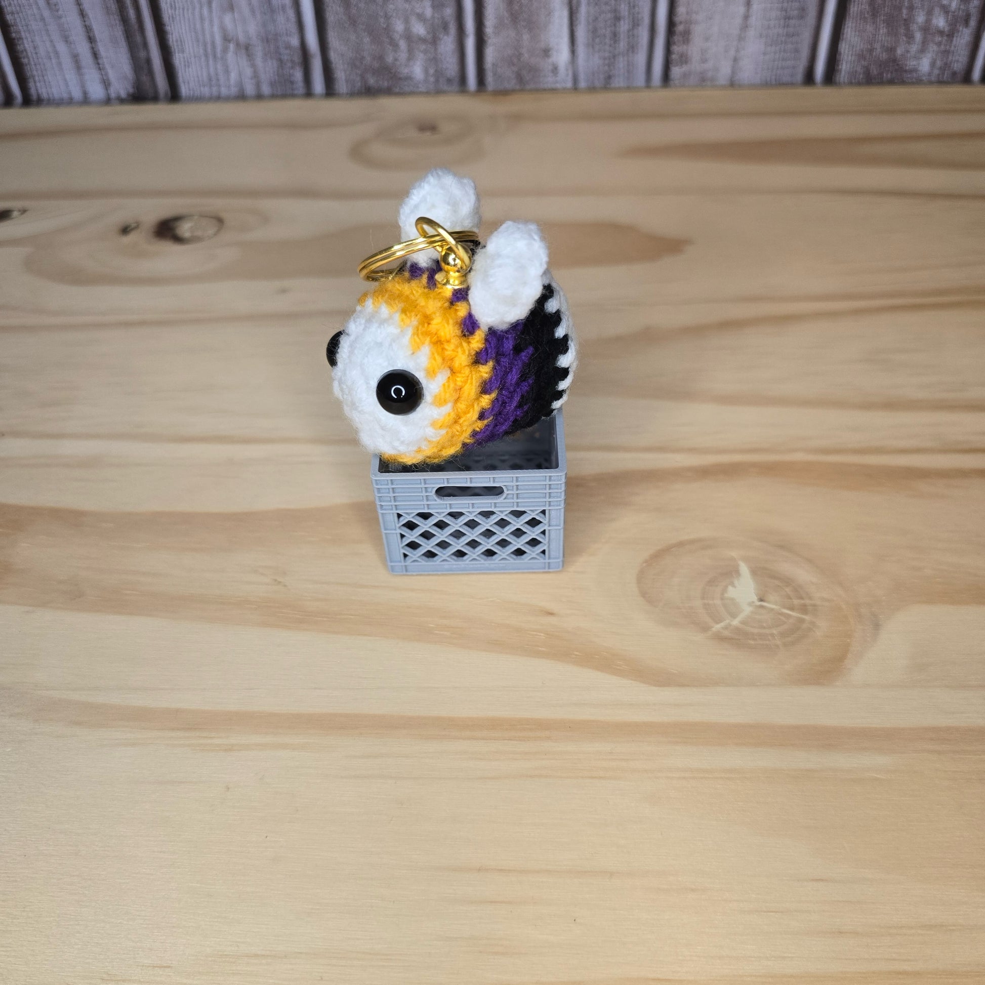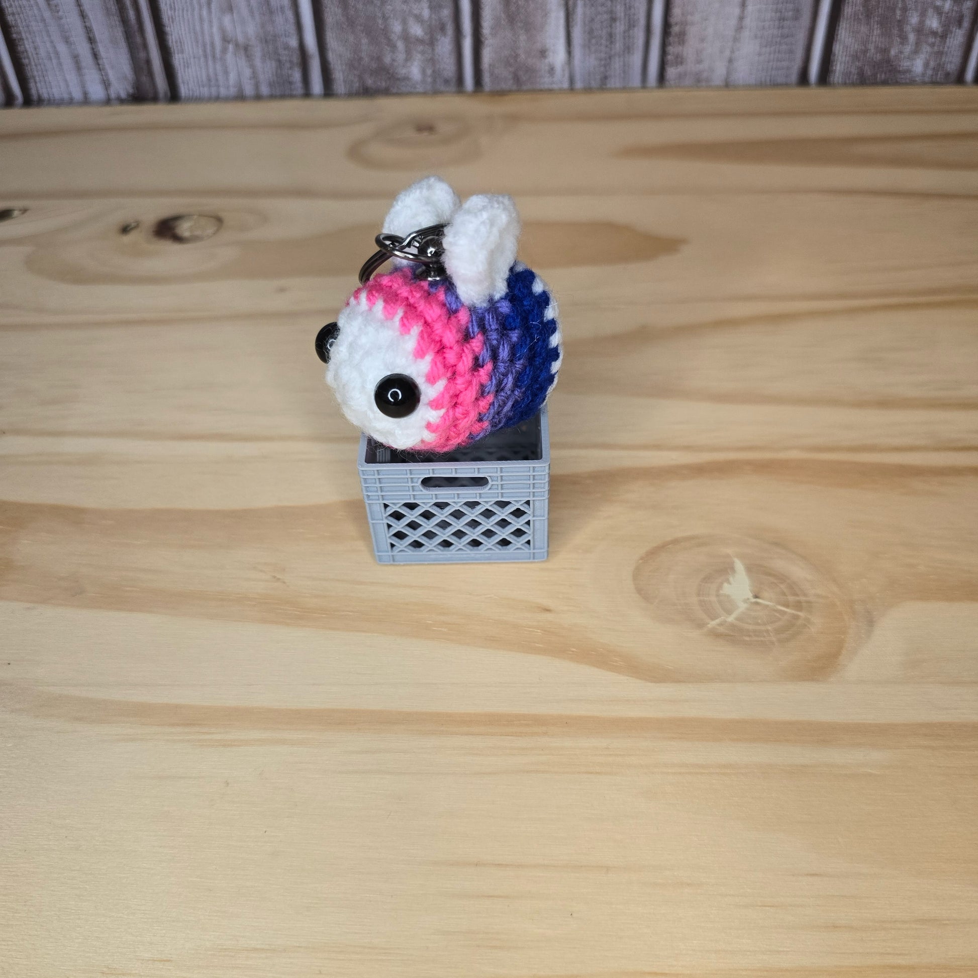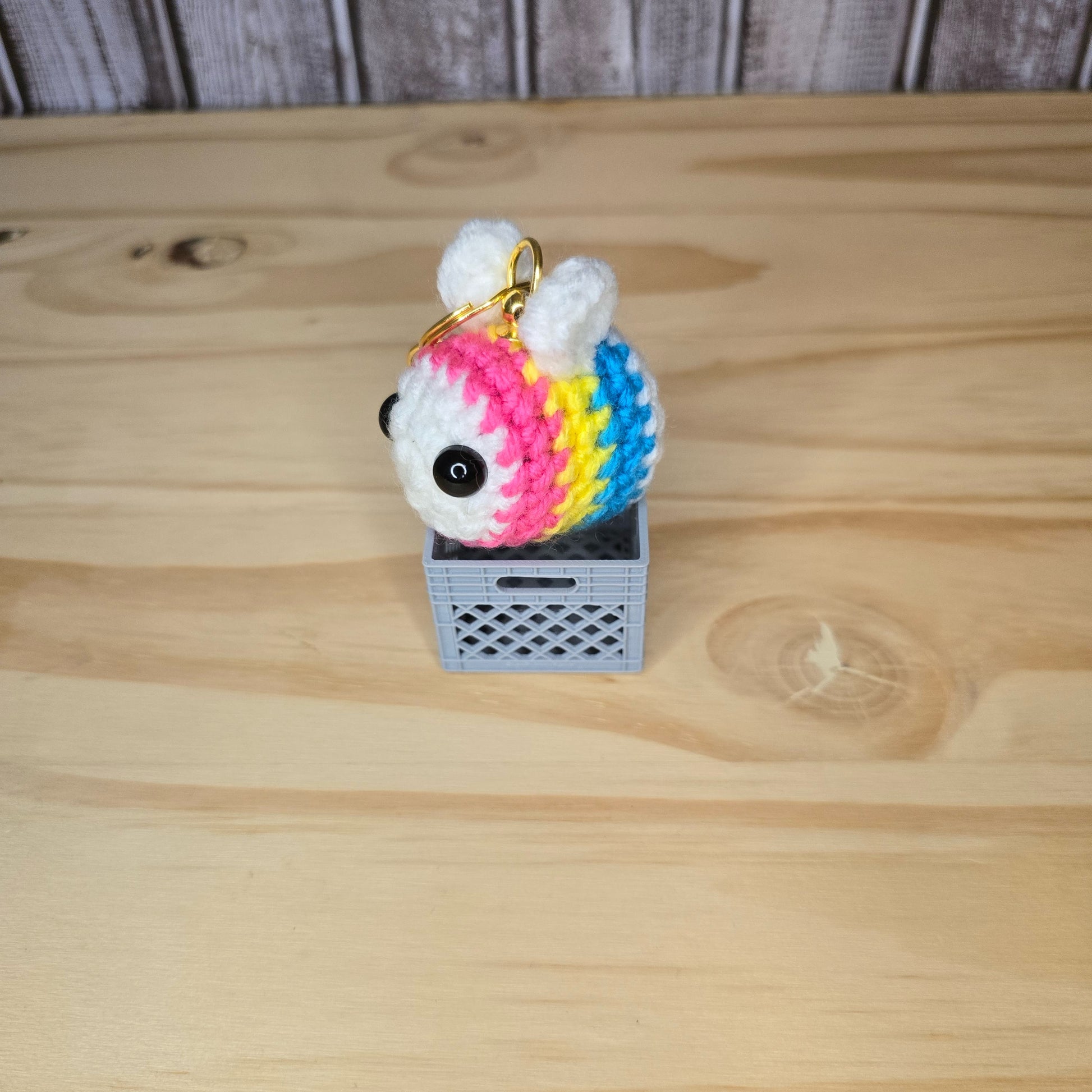 Adorable little bee friend keychains colored to match the themes of different pride flags