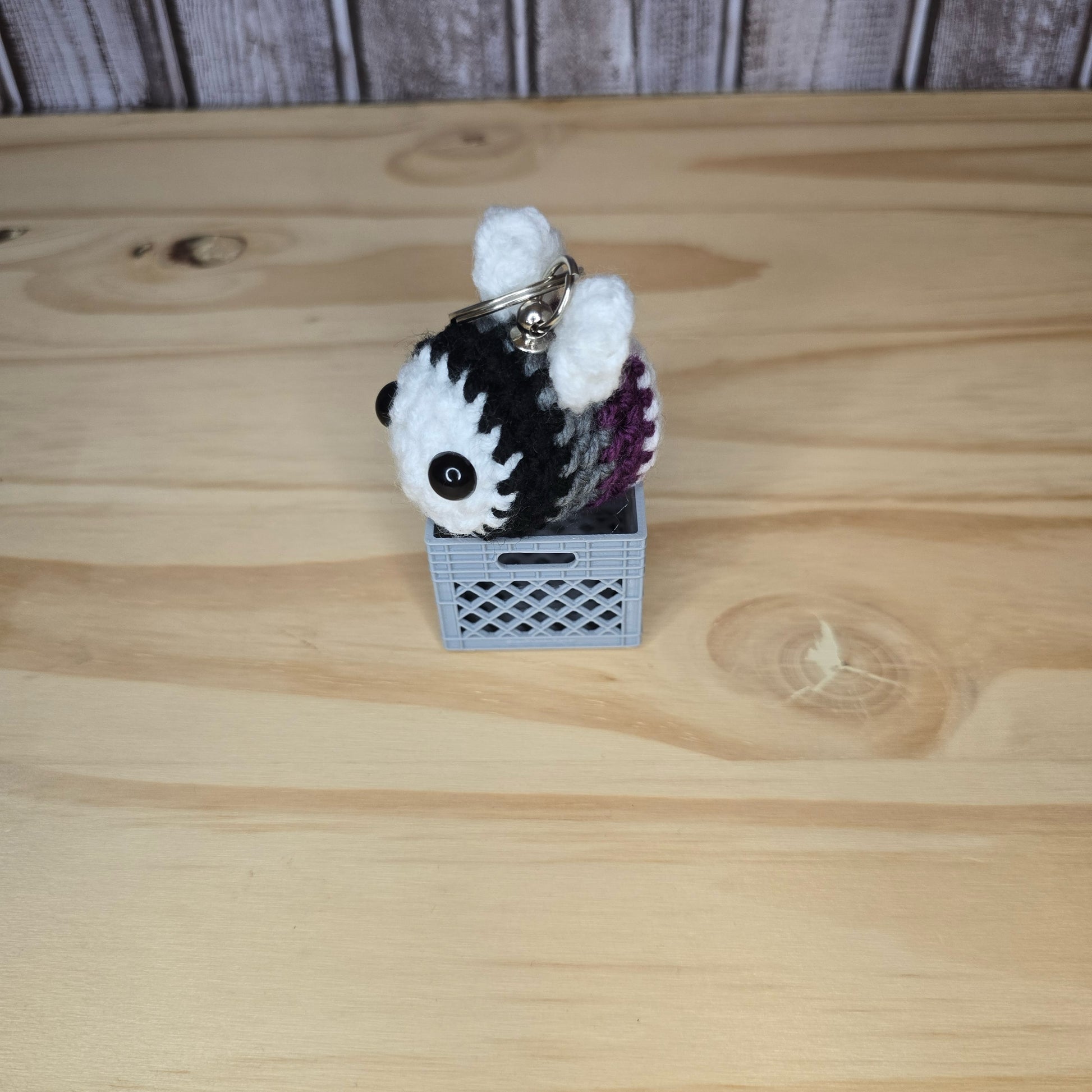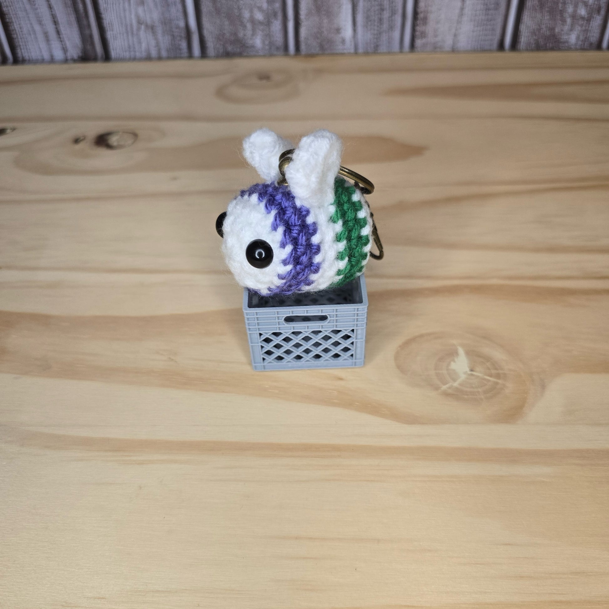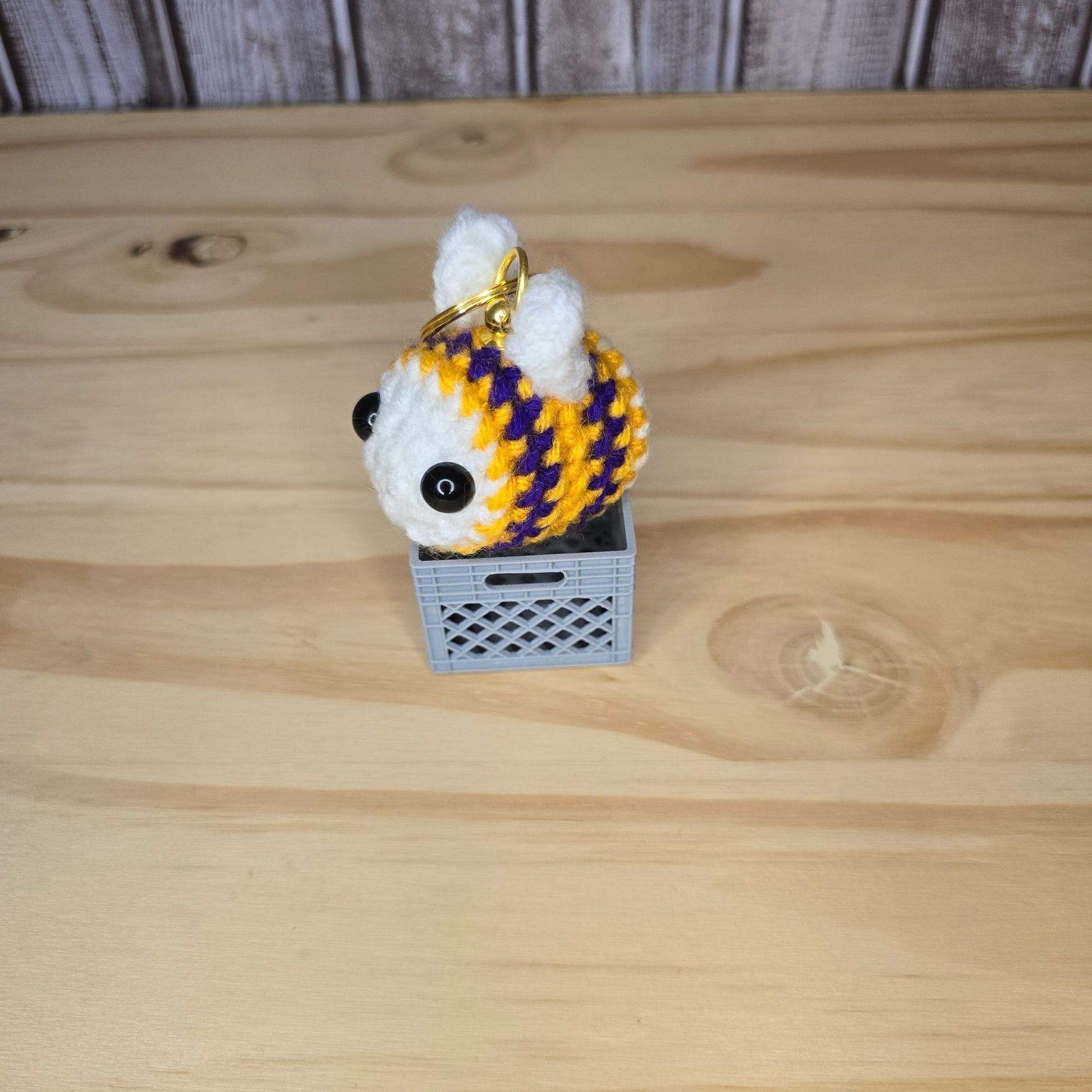 Adorable little bee friend keychains colored to match the themes of different pride flags