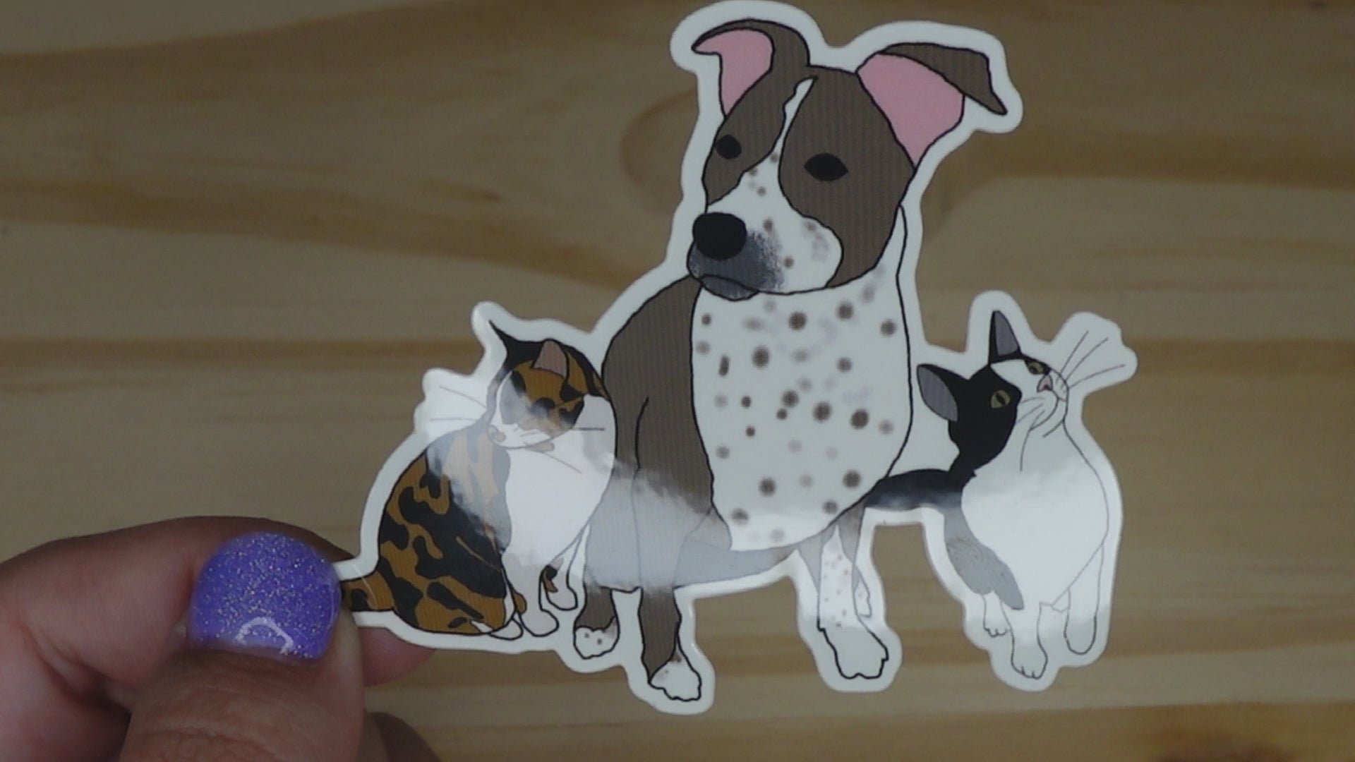 Digital art of our current three pets in order: Nitra, JD and Gwen